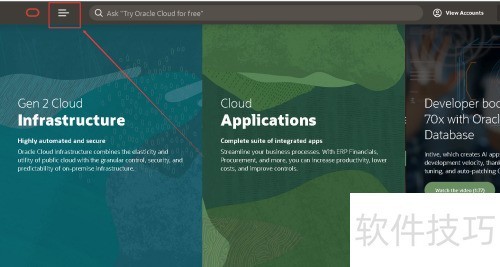 1、 首先,访问甲骨文官网,点击左上角的列表图标,选择其中的Java选项,单击以进入相...
