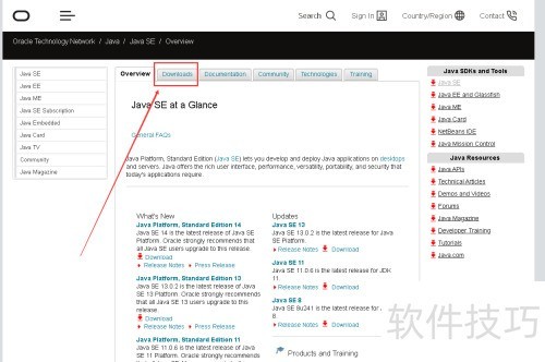 2、 跳转页面后,在相关页面找到Java SE,单击选中,会出现Download按钮。点击后跳转至Java SE概述页面,顶部切换到Download选项卡即可。