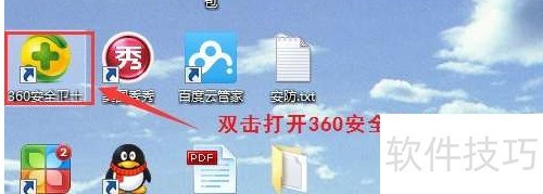 1、 双击桌面360安全卫士图标打开,进入其首页,所示。