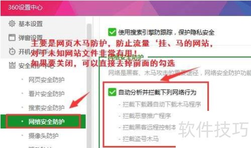 5、 主要功能是防护网页木马,防止访问带恶意程序的网站,对未知网站文件特别有效。 若要关闭,取消前面的勾选即可。
