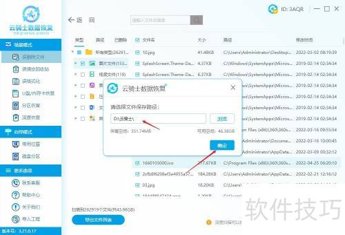 4、 勾选要恢复的文件,点击右下角立即恢复按钮,选择存储路径(建议另存为其他路径),即可成功恢复文件。