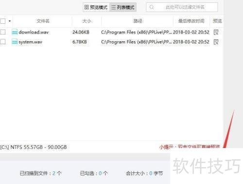 4、 扫描完成后,会显示已删除的图片列表,从中选择需要恢复的音频文件(如MP3、WMA格式),点击恢复按钮即可完成操作。