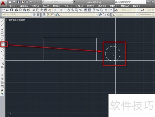 1、 使用左侧圆工具,点击鼠标确定圆心,拖动即可快速绘制圆形轮廓,所示。