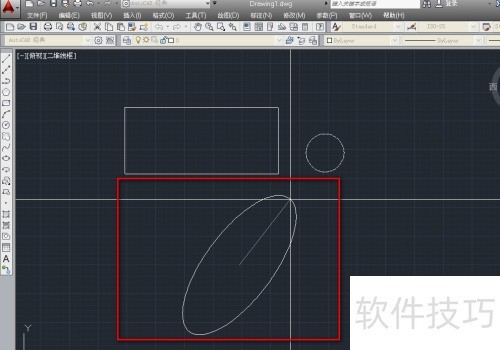 3、 在其他方向拖动鼠标,可确定椭圆的另一轴线,从而完成椭圆的绘制,所示。