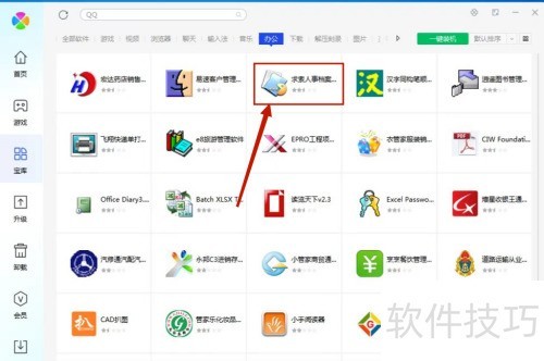 3、 在办公软件库中找到求索人事档案...,左键点击后一键安装即可。