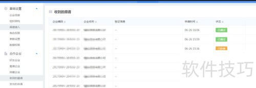 13、 若收到其他企业申请成为好友企业的请求,可在系统设置/合作企业/收到的邀请中查看记录,并选择同意或拒绝。