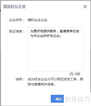 10、 在弹窗输入验证信息后,点击确定按钮,即可发送邀请请求。