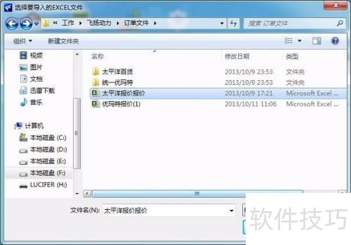 2、 点击从Excel导入报价,参照下图选择客户的Excel报价清单文件。
