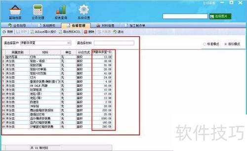 1、 打开软件,进入价格管理界面,选择报价模式,选取要导入报价的客户,所示。