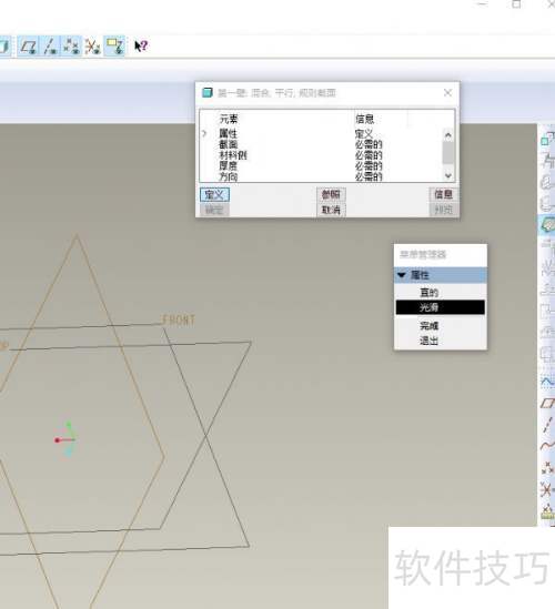 3、 绘制首个截面:选择平面,进入草绘,画200x200正方形,四角R5倒圆。