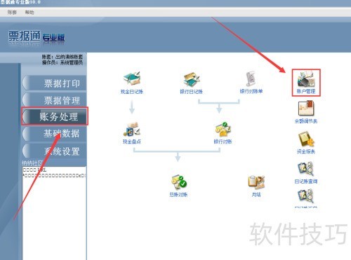 2、 登录后,进入账务模块,开启账户管理功能。