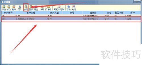 7、 选择银行存款账户,点击启用,至此,银行存款账户创建完成。