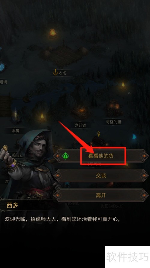 4、 对话中选择看看他的货按钮,进入第一个界面。