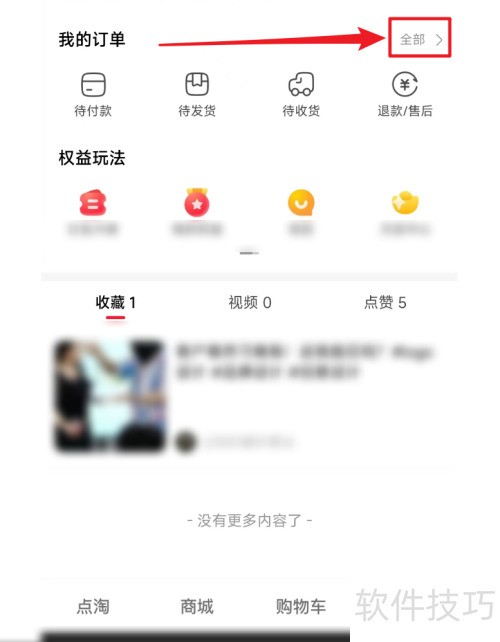 2、 进入我的页面,点击我的订单一行中的全部按钮。
