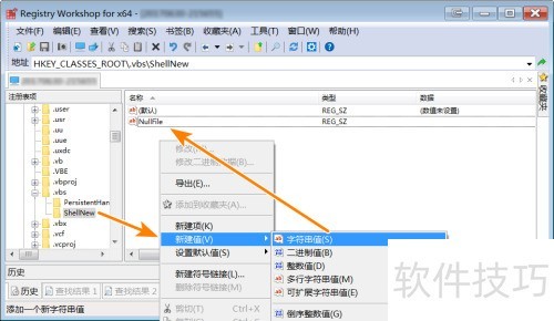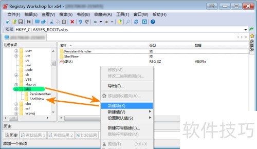 3、 右键点击.vbs文件,选择新建项,然后将新建项重命名为ShellNew。