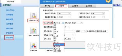 2、 系统参数配置完成后,统计查询中的默认日期将变为修改后的查询日期,3所示。