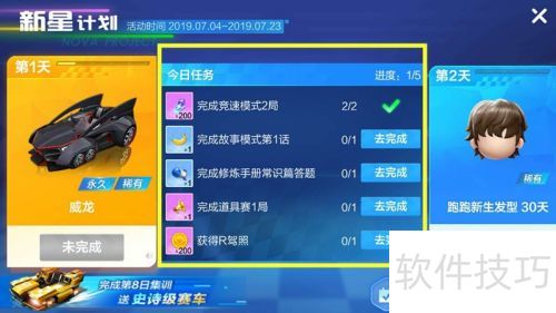 2、 点击新星计划,可见第一天任务。完成这些任务,即可获得赛龙车奖励。加油!