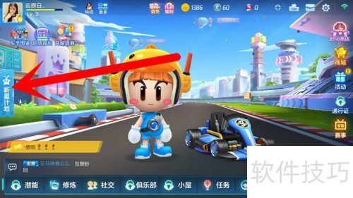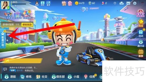 1、 登录跑跑卡丁车游戏,进入界面后,点击左侧的新星计划选项。