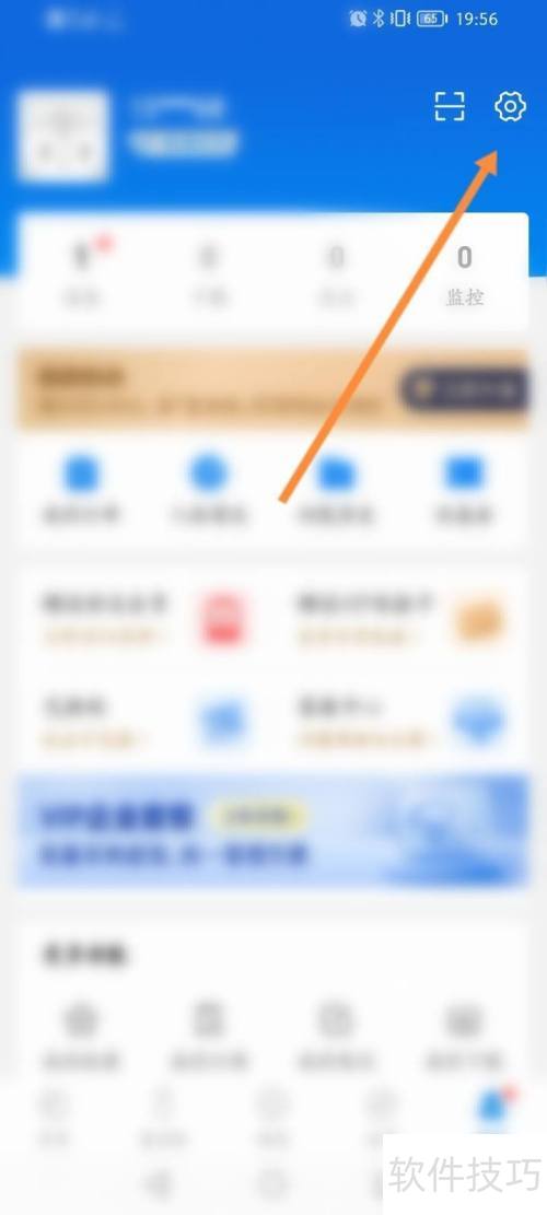 1、 首先,打开手机上的企查查应用,找到并点击设置图标。