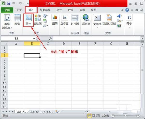 首先在excel菜单“插入”项中找到“图片”图标按钮,点击该图标,如下图所示: